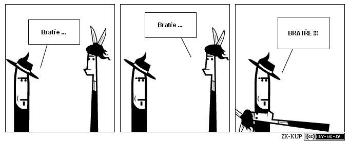 S nápadem vytvořit stripy, které by stručnou formou charakterizovaly děj knížek, přišla Zuzana Kelnarová. Nápad se nám líbil, a proto jsme vytvořili rubriku „Knihy ve zkratce“. Autory jsou Zuzana Kelnarová a Jindřich Juráš - stripy vytvářejí v programu Stripgenerator (https://stripgenerator.com/). Dílo vzniklo pod licenci CC: https://